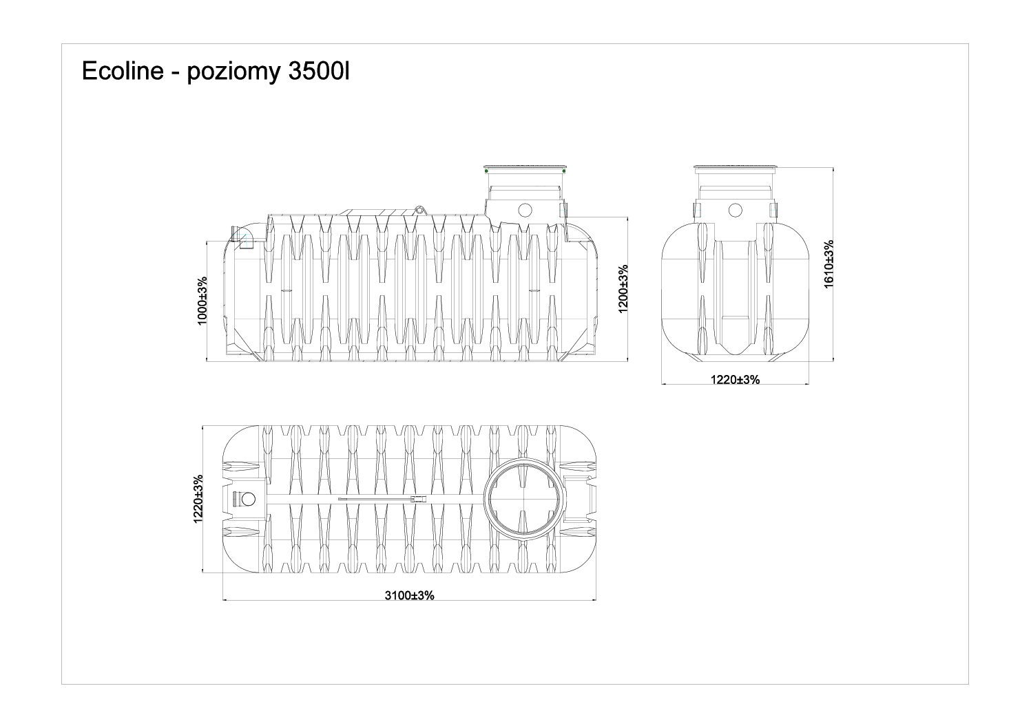 - 3 przyłącza DN 100 (inne wymiary i lokalizacja na zamówienie)