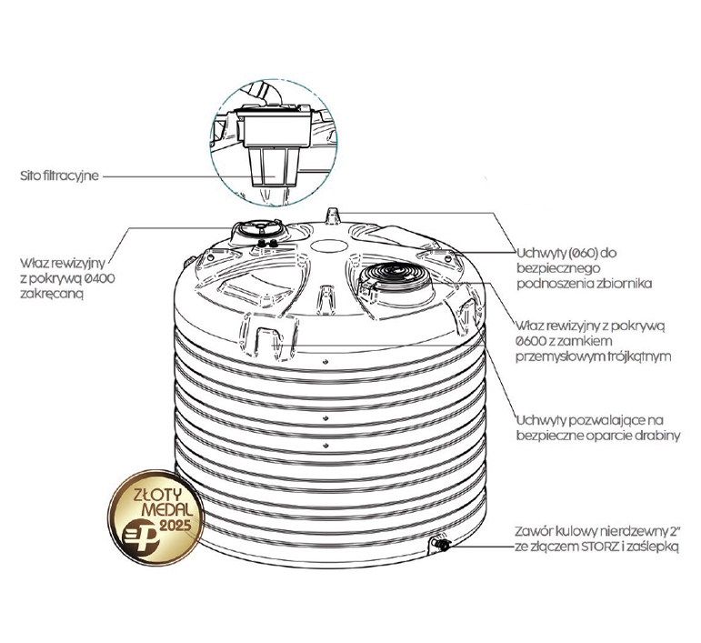 ● Odporność: zbiornik jest odporny na promieniowanie UV, korozję i ekstremalne warunki atmosferyczne, zachowując wygląd i właściwości przez wiele lat, odporność termiczne -40 + 60 stopni.